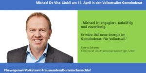 Die Mitglieder der Grünliberale Volketswil-Schwerzenbach haben an ihrem letzten glp-Höck einstimmig beschlossen, Michael De Vita-Läubli als Kandidaten für den Volketswiler Gemeinderat ins Rennen zu schicken. Für die neu fusionierte reformierte …